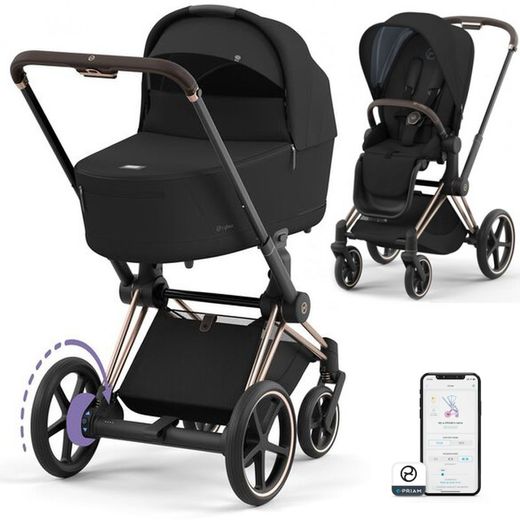O conjunto completo do carrinho de bebê Cybex e-PRIAM (com assento e moisés) inclui: