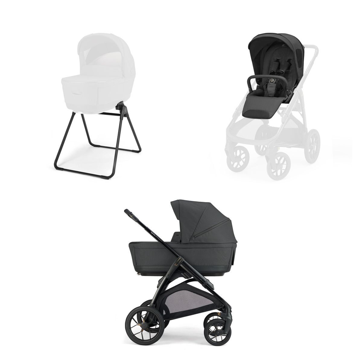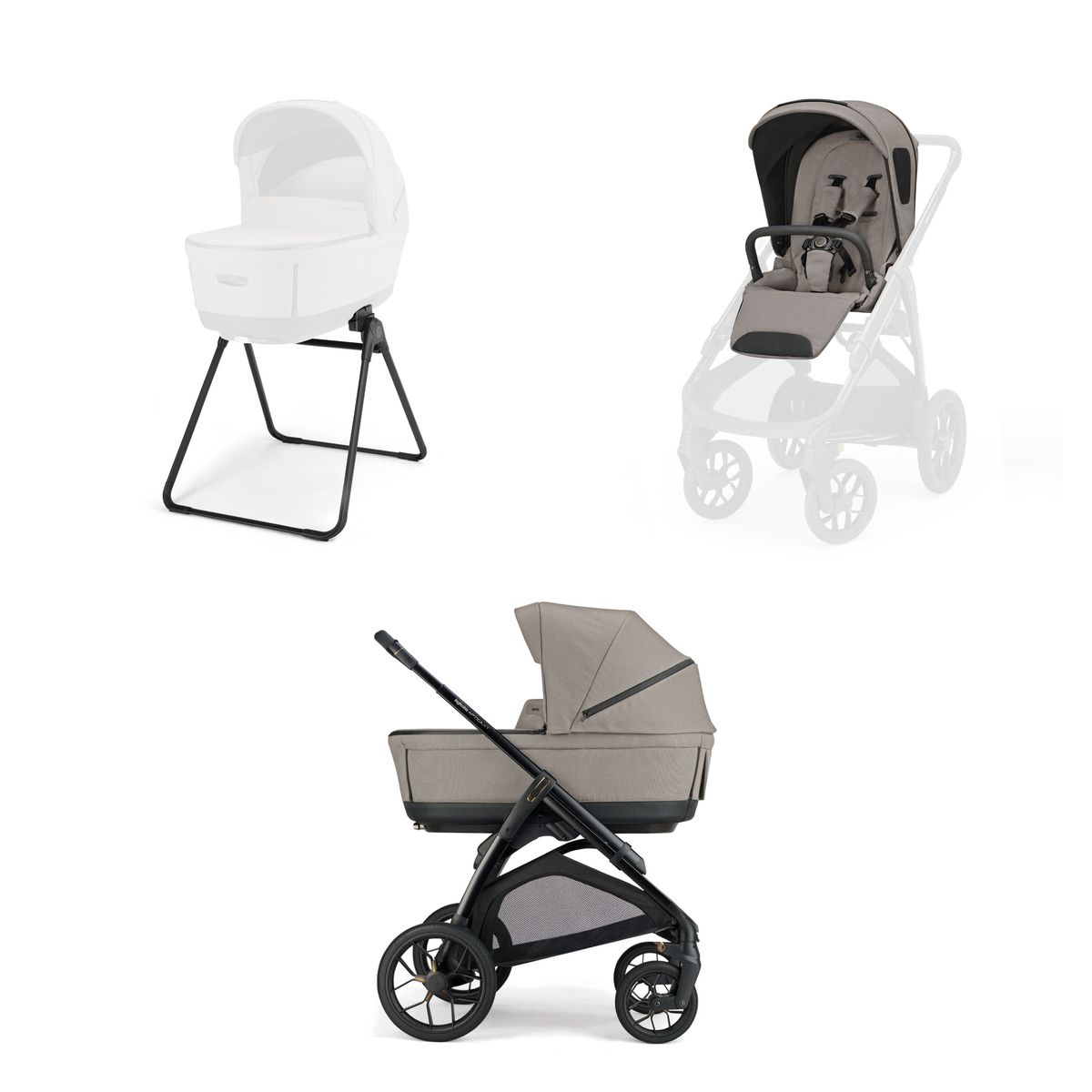Gracias a su estructura modular, el sistema permite utilizar capazo durante los primeros meses y posteriormente transformarse en silla de paseo reversible, adaptándose a cada etapa del crecimiento del niño.