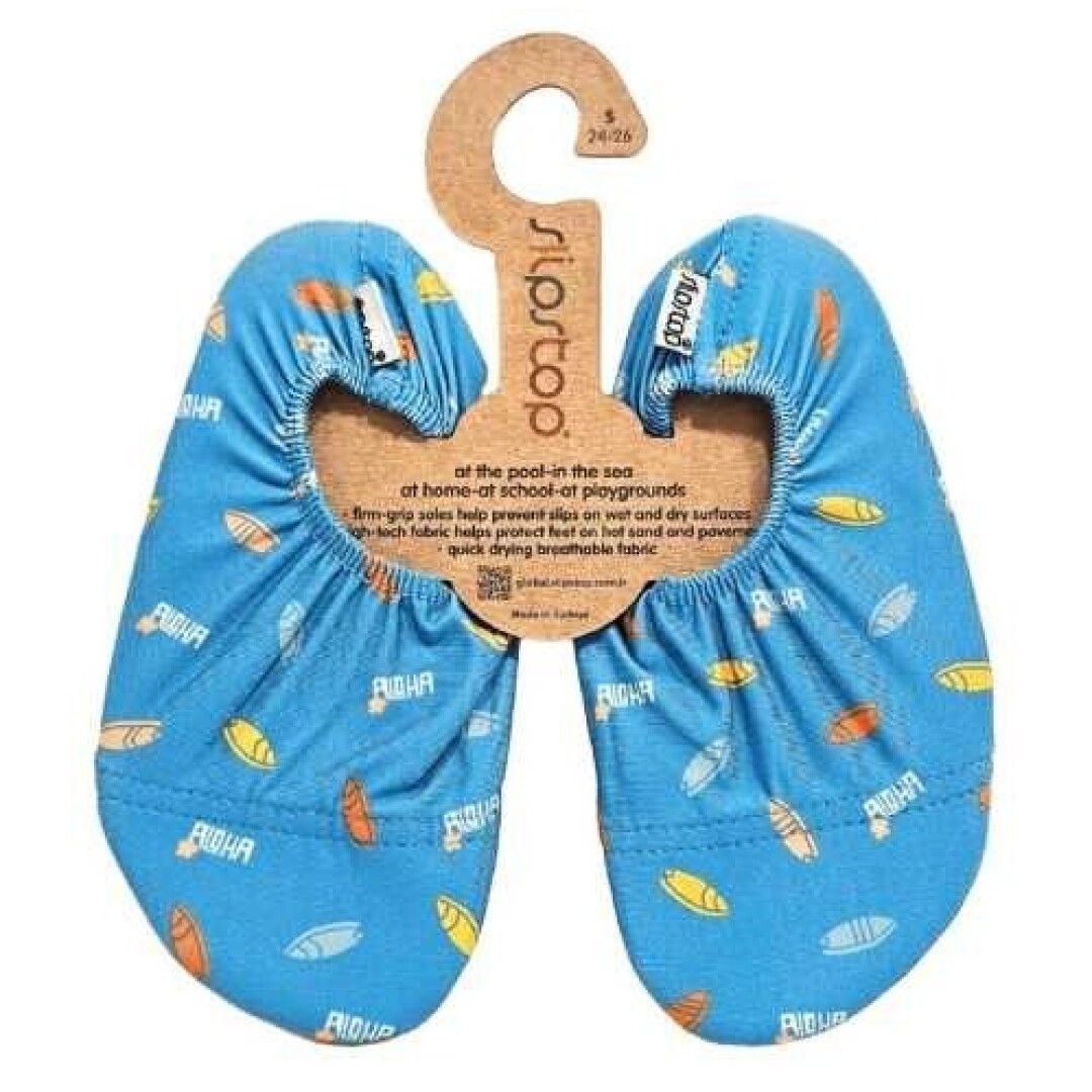 SLIP STOP son unas zapatillas ligeras y antideslizantes, para usar en superficies secas o mojadas como piscina, playa, río, césped, arena, parques infantiles, en casa, ballet, gimnasia…